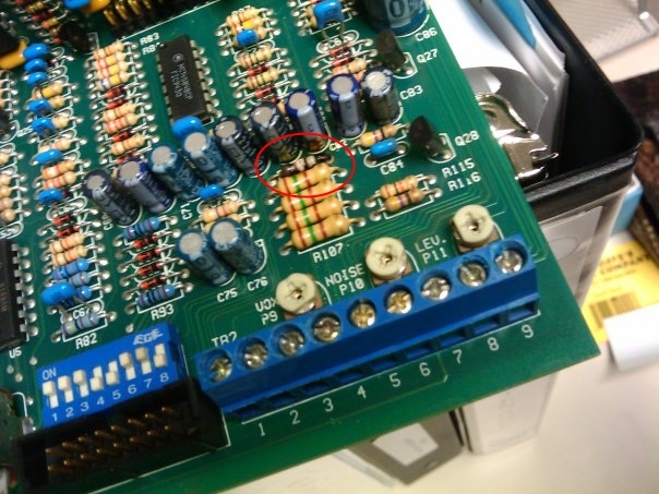 This is what happens when you connect the high level output of an audio amplifier, to an input designed to be hooked up to an MP3 player or other line level audio source. This Aiphone PA amplifier was incorrectly installed by a technician and it made this 1/2W resistor dissipate about 40W. It held up…briefly…but quickly turned into a charred mess. It was somehow managing to pass a terribly distorted signal but didn’t damage any other components. After replacing the resistor on this pictured unit, and another identical one damaged the same way, it was back in service.