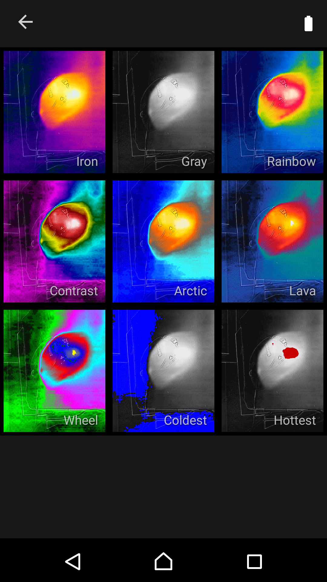 Sadly, the phone’s hard shutter button doesn’t cause the FLIR One app to take a photo, you have to use the on-screen button. In addition, most of the controls are un-labeled – and there’s no “Help” menu, or manual included in the package.